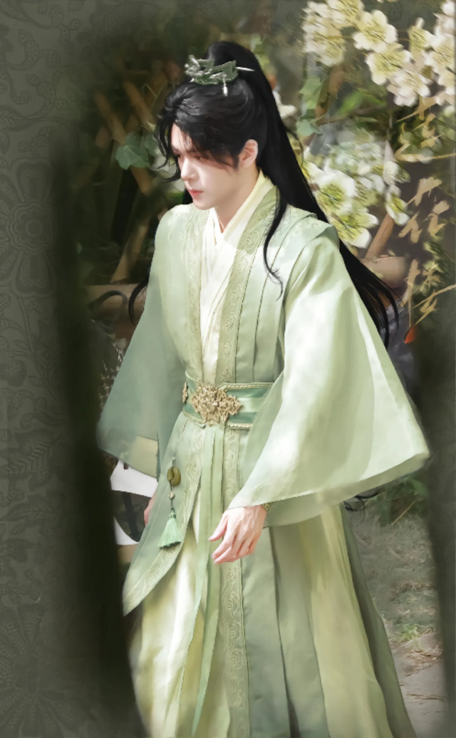 那“公子”身穿汉服,虽是男装打扮,却难掩其卓绝风姿。那衣衫精致而华丽,蓝色与金色的花纹像是被巧手的绣娘倾注了灵魂,一针一线皆透着高贵。