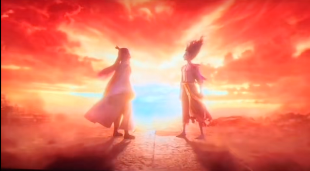暮许时分,金色的霞光与海面交相辉映。哪吒转身之后向前走了几步,原本眼中的神采渐渐黯淡,忽然听到身后轻柔的脚步声,他顿下步子,轻笑道: