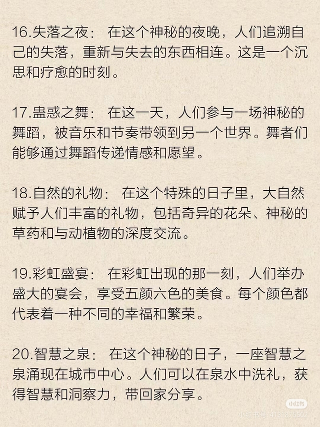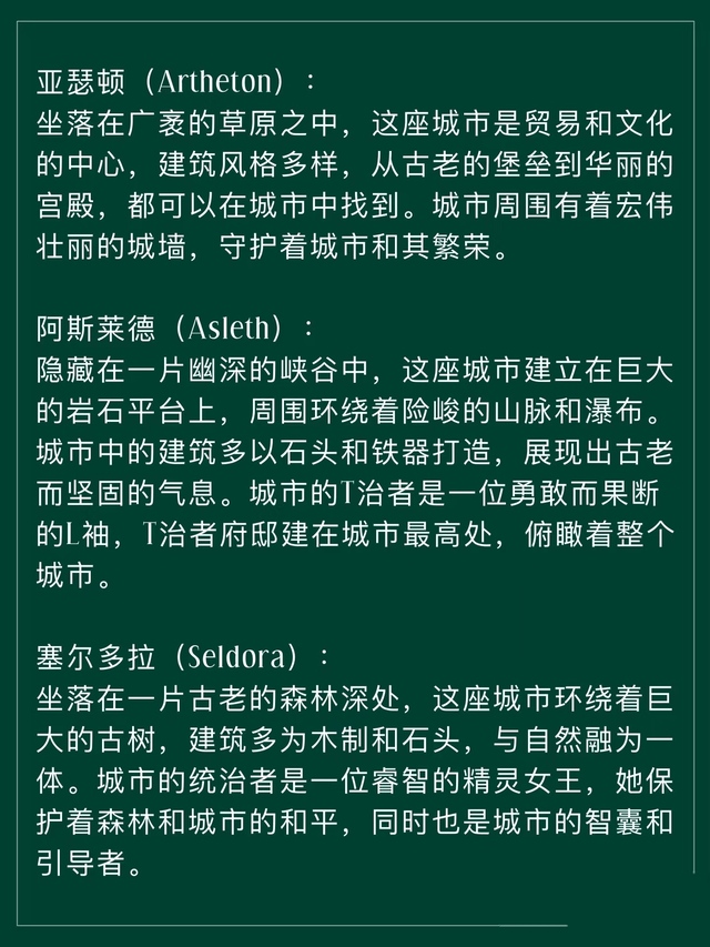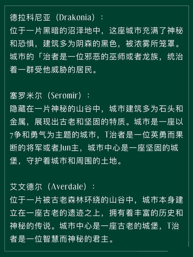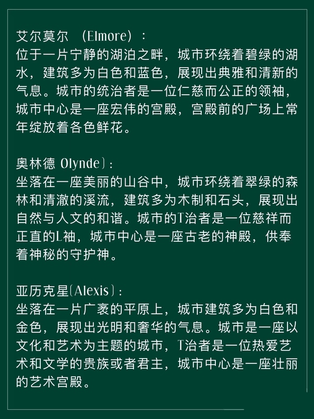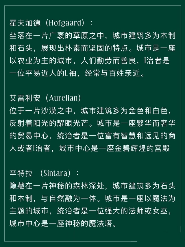 嗯,然后就是宝马森林的规模很大,里面包括说湖泊山脉沼泽山谷平原草地,还有冰川和沙漠只不过地区比较远罢了。所以这里有很多不同种类的魔药。这里也是存在四季变化的。建筑大部分以西方古希腊罗马风格。里面每一个化为人形的动物都是有自己的领地统治的,有很多个板块,所以这片魔法森林里大多分布很多的宫殿。