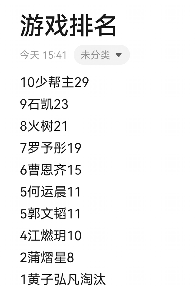 天音整场游戏的轮次已经全部结束,现在发布本场游戏的最终结果。