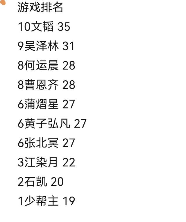 天音本次游戏的轮次已经全部结束,现在发布本场游戏的最总排名。
