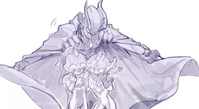 赛罗两个小家伙跑到我披风下来了