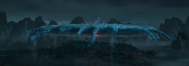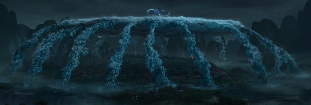 敖丙叹了口气现出本相,白龙盘旋而起,来到冰坨上方,猛地下坠势要将其压向陈塘关。