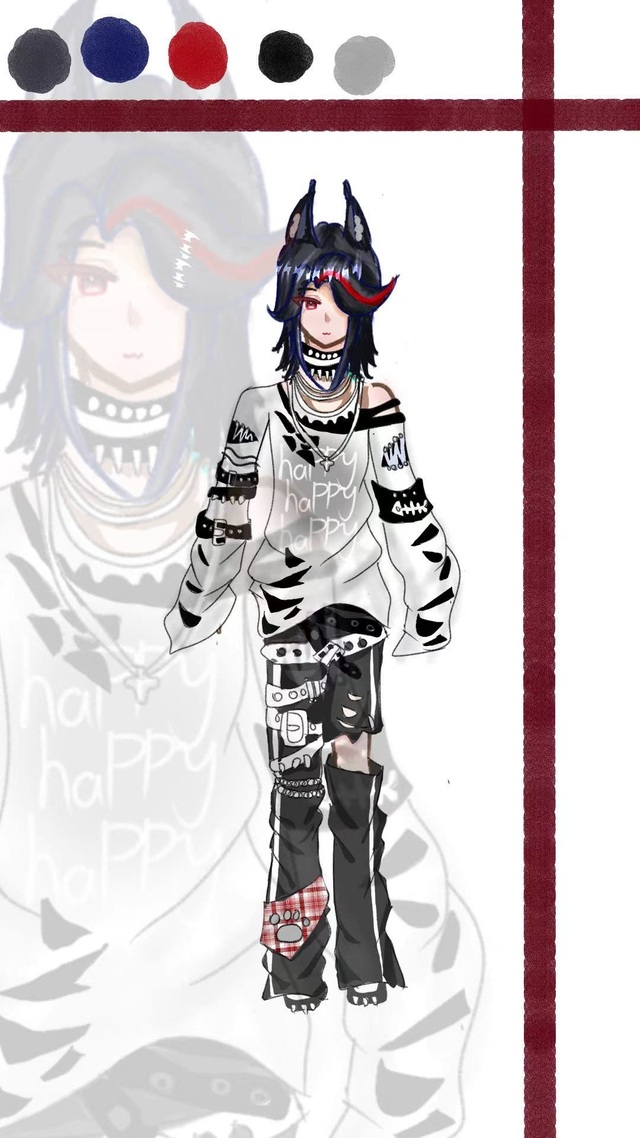 一头黑发,刘海翘起并挡住了右半边眼睛,后面的鲻鱼头垂在脖子两侧,刘海中还有着红色挑染,一只红眸精巧而深邃,而被刘海挡住的那只眼睛望去却是一片黑暗,头上有一对黑色狐耳,身后有一只黑色孤尾,给人一种心思极深不好猜测的样子