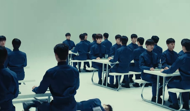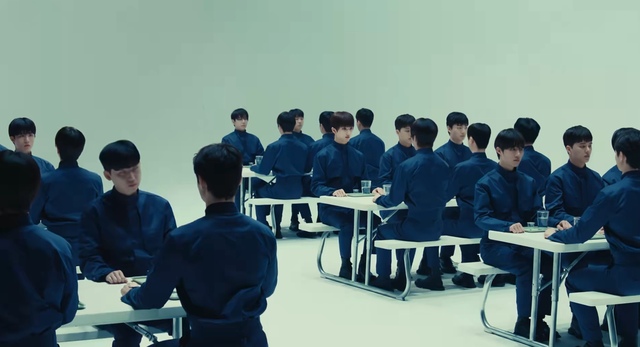 之所以猜测是餐厅,还是因为这里摆满了类似学校食堂的特制桌椅。每个人的座位应该都是固定的,因为她在坐下之前看到了桌子内侧边缘刻着编号,不太显眼,但也避免了她坐错位置。