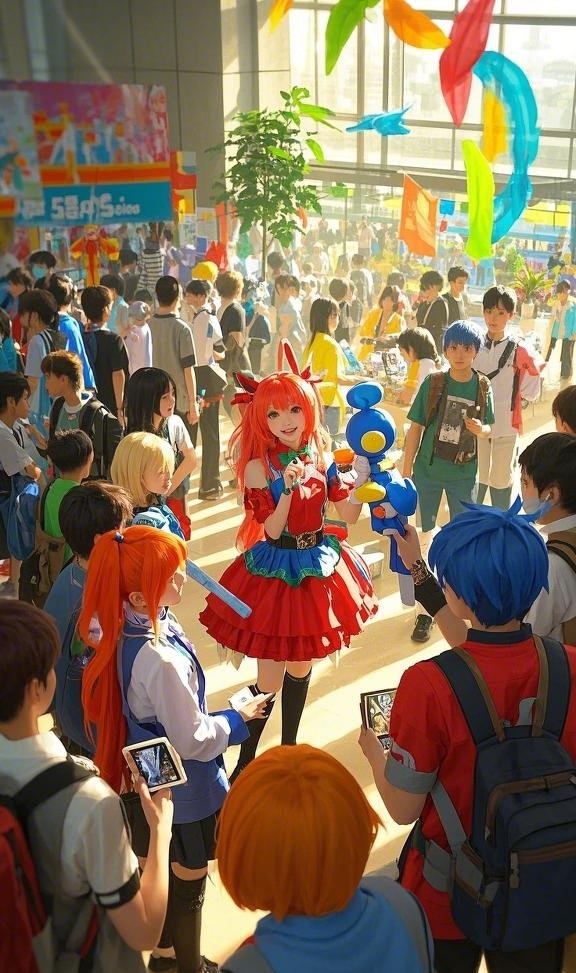 六月的阳光,带着中考结束后的慵懒,透过会展中心巨大的玻璃穹顶洒下,在空气中勾勒出浮尘的轨迹。漫展里人声鼎沸,色彩流淌,这里是幻想照进现实的王国。