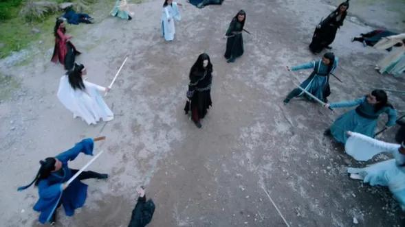 金凌,拿起岁华。想杀他的时候。突然出现了一道蓝色的光剑,白色的光剑