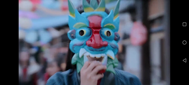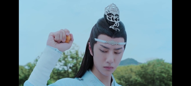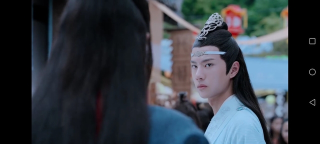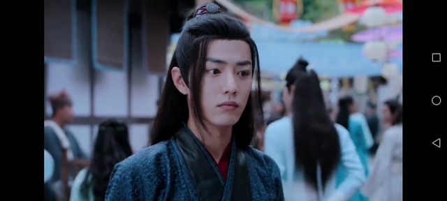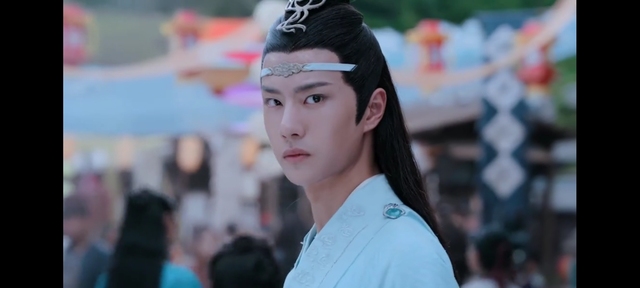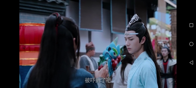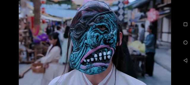 魏无羡。带了一个面具。蓝忘机转头之前突然被吓到,但是表情还挺自然的