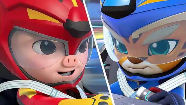 比赛开始了,一开始猪猪侠和星航都与赛车着相同的距离,可赛车突然加速猪猪侠和星航立马被甩开了一大截,眼看就要输了,正好前面一个弯道,猪猪侠和星航利用晚刹车成功超过,拿下第一,第二