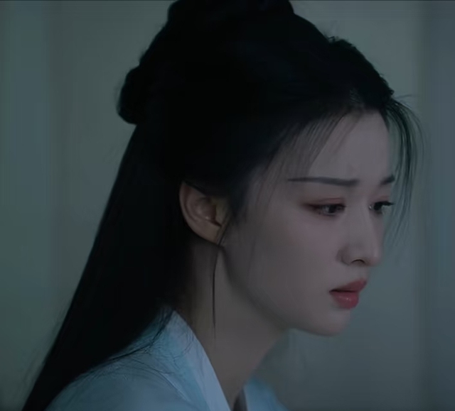 泪珠从脸颊悄然滑落。那双眼睛里盛着无尽的哀伤。
