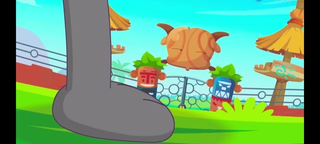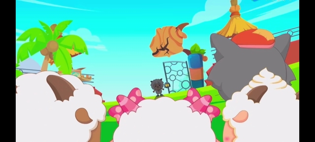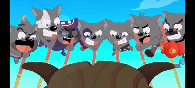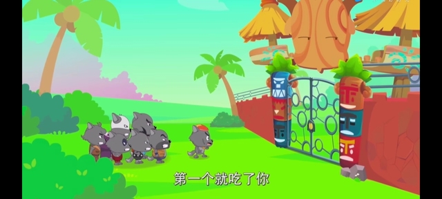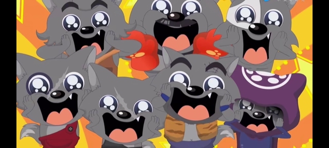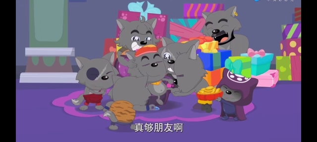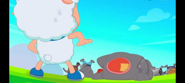 当看到灰太狼被七大恶狼踩在脚下时,懒羊羊第一个笑出了声:“哈哈哈哈……灰太狼你好惨啊。”