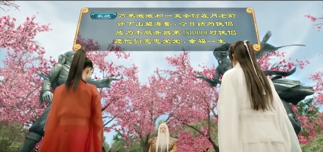 倩女幽魂系统芦苇微微,一笑奈何许下山盟海誓,今日结为侠侣。成为本服务器第十五万八千九百九十九对侠侣,祝你们恩恩爱爱,幸福一生