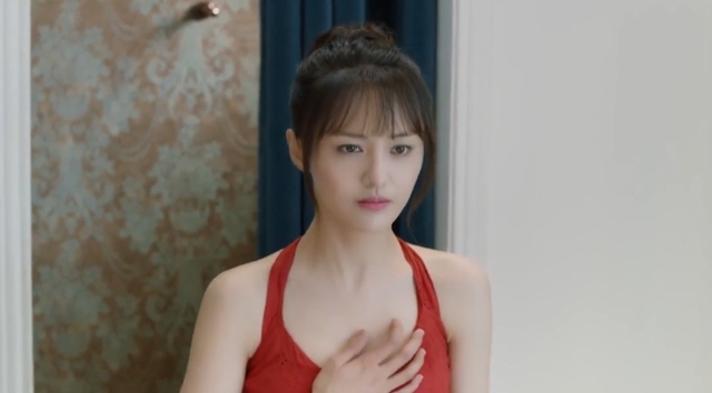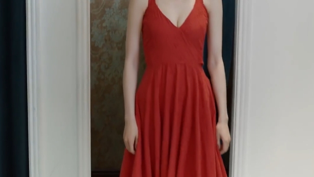 贝微微你们觉得这裙子怎么样「穿着红色连衣裙从换衣室里走出来」