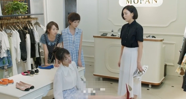 晓玲不行,不行,这个跟你这身衣服就不搭。你必须得穿高跟鞋才行