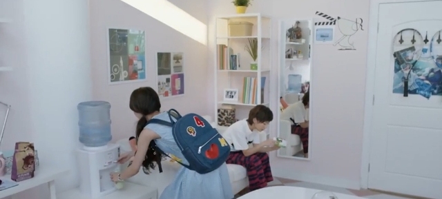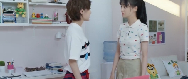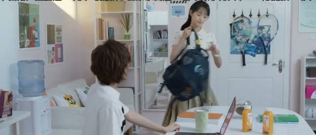 贝微微「将书包放在桌上问」怎么了?脸怎么这么红啊?是不是发烧了