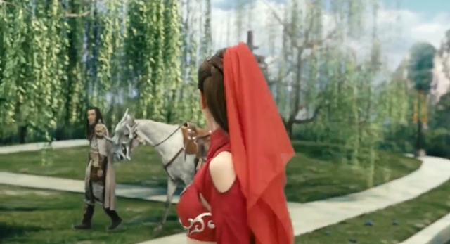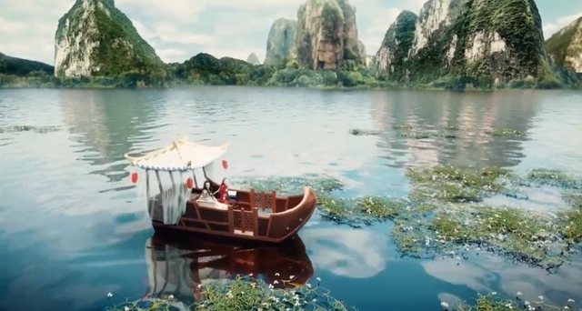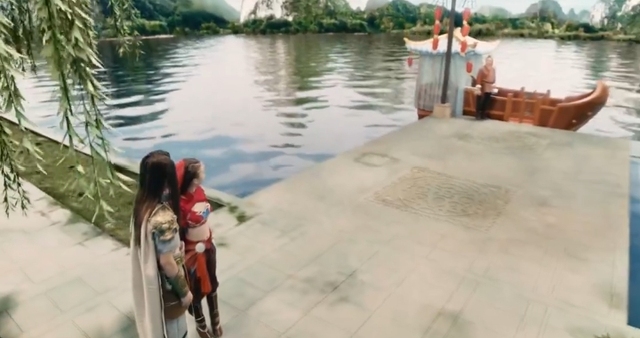 NPC船夫打开门,欢天喜地和微光就走上了船