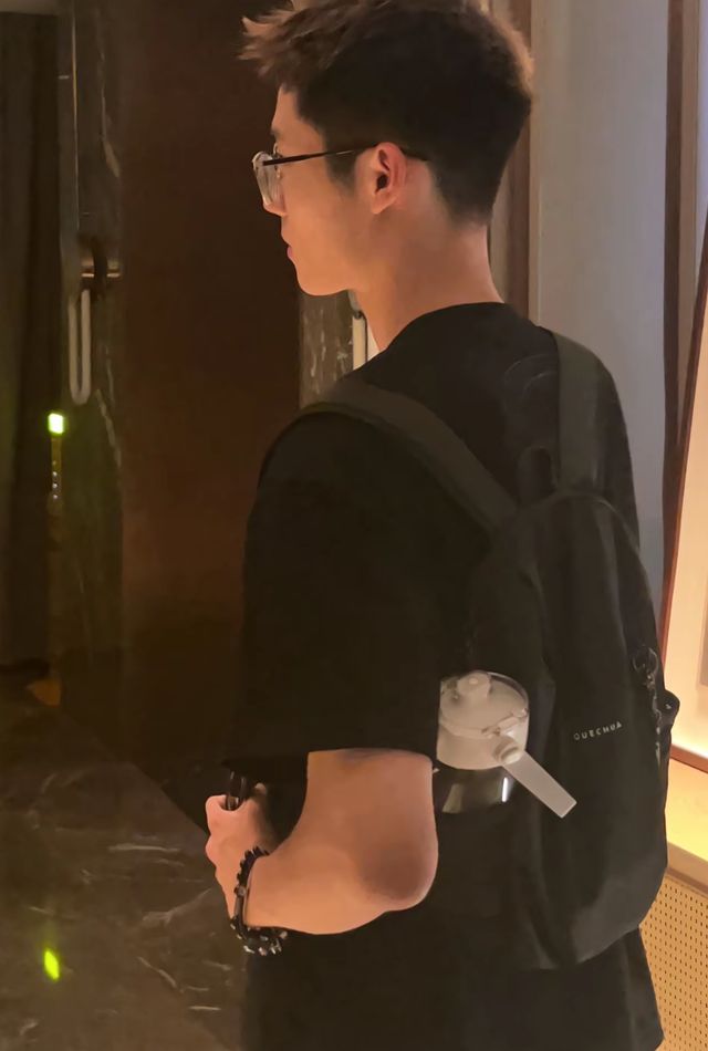 当胡竟在房间里精心挑选着衣物,蒋鹏翰安静地在外等候。胡竟利用这短暂的间隙,悄然举起手机,为蒋鹏翰定格下了那抹侧脸的轮廓。