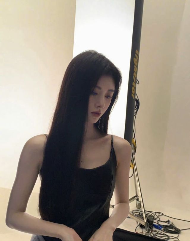 办公室门口站着个穿黑色吊带裙的女生,卷发垂在肩后,泛着细碎的光泽,她的皮肤是冷调的白,眼尾微微上挑,本该是勾人的弧度,却没半点笑意,她的五官精致,涂着冷调的口红,气质冷艳,让人挪不开