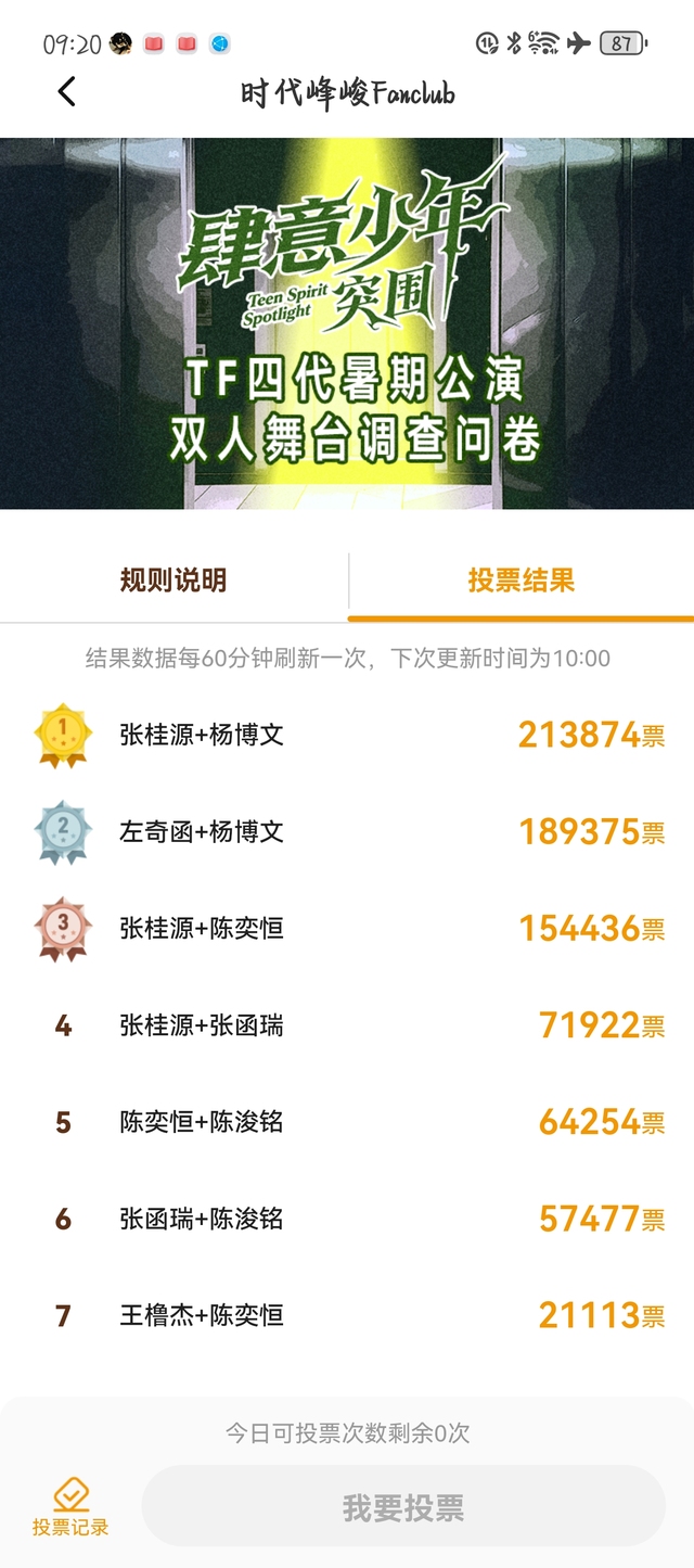 陈奕恒差了一万多的票