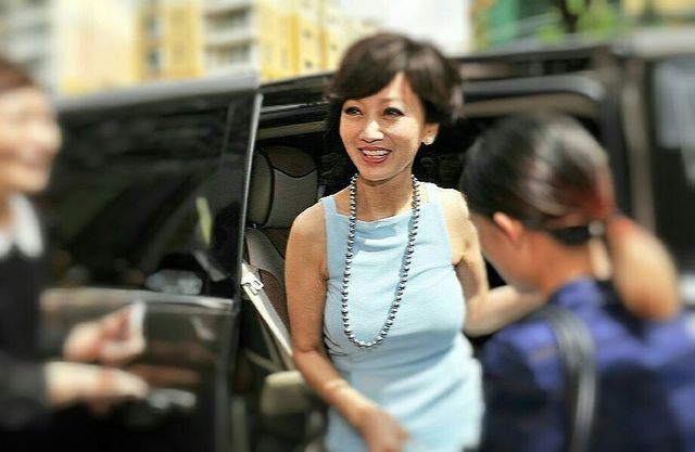 赵雅芝笑嘻嘻地下了车