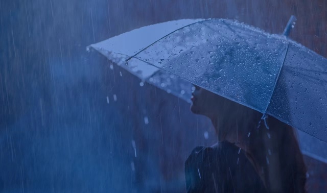 少女撑着一把伞,独自一人走在雨中,她伸出一只手到伞外,雨点一滴一滴的滴在她的手掌心上。突然之间,她握紧了拳头,将手伸回了伞内。