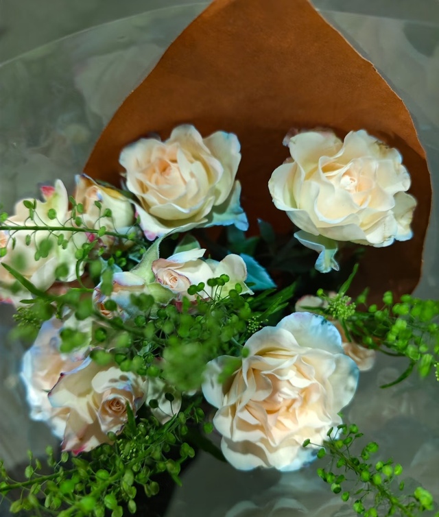 玉竹熙看着真中剑悟笑了笑,什么也没说,拿着她刚刚包好的花,递到真中剑悟手中,说道。