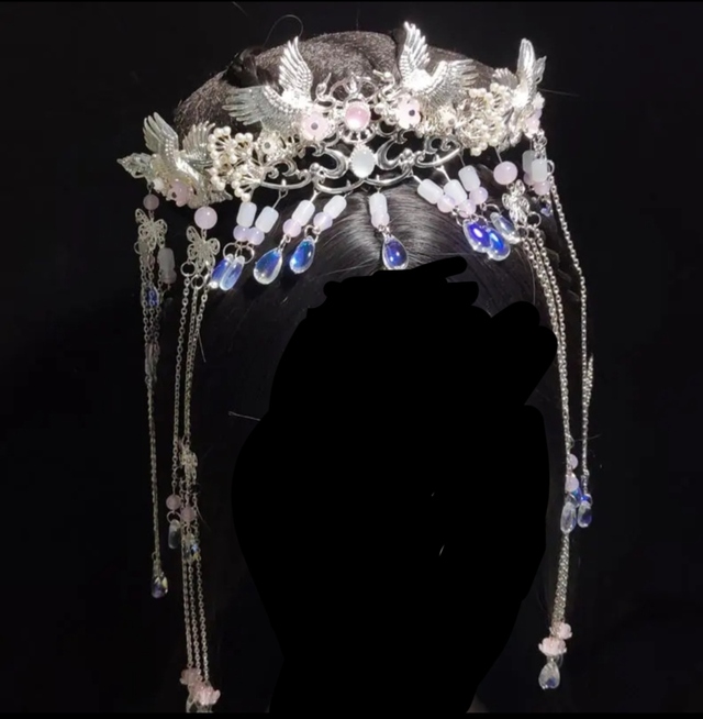 万能小人掌柜的:……这冠冕之下垂落着的流苏,乃是由蓝粉渐变的水晶珠串成,颗颗晶莹剔透,在光线映照下更是炫彩迷人…… 最别致的是这几缕细长的银链,就如涓涓细流般从冠冕两侧倾泻而下,末端悬挂着水滴形宝石……