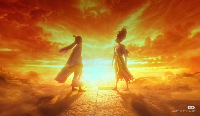 远在陈塘关的哪吒站在城楼上等待了敖丙一天,李靖拍了拍他的肩膀,哪吒也就跟随他们走了,但是当他听见一个声音时他就知道自己赌对了