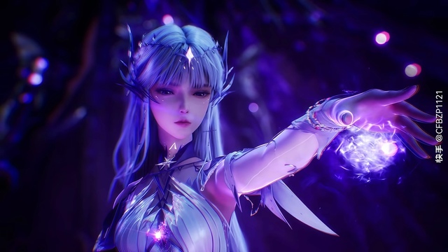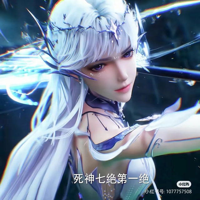 微风拂过,采儿的白色长发轻轻舞动,她漠然开口,声音冰冷,却带着令人窒息的压迫感:“神降术,死神神降!”