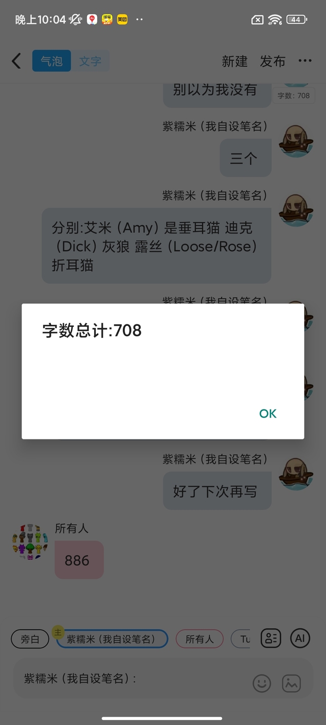 紫糯米(我自设笔名)分别:艾米(Amy)是垂耳猫 迪克(Dick)灰狼 露丝(Loose/Rose)折耳猫