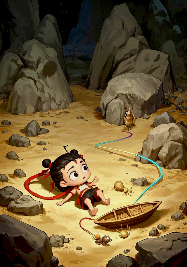 哪吒又蹦蹦跳跳起来,看到洞壁有个小窟窿,眼睛一亮:“敖丙,这小窟窿像不像小怪兽的嘴巴?说不定里面住着会说话的小虫子。”敖丙无奈:“哪吒,你又想些奇奇怪怪的事。”哪吒撅嘴:“这叫想象力!我还想和它交朋友,让它讲地下世界的故事呢。”