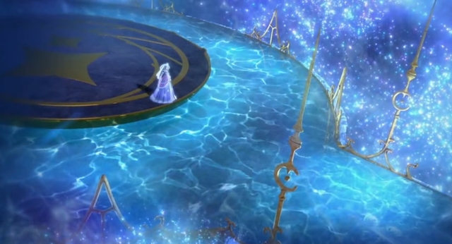 时间的长河,时间使者,时间摆渡在这里的话,难道尽头是四时钟?(时希问时间使者)你是想引我回家吗?(时希飞到了时间摆渡上)起船吧!时间的钟摆摆动起来,怀表回来了,这些光点是时间长河散掉的碎片吗?