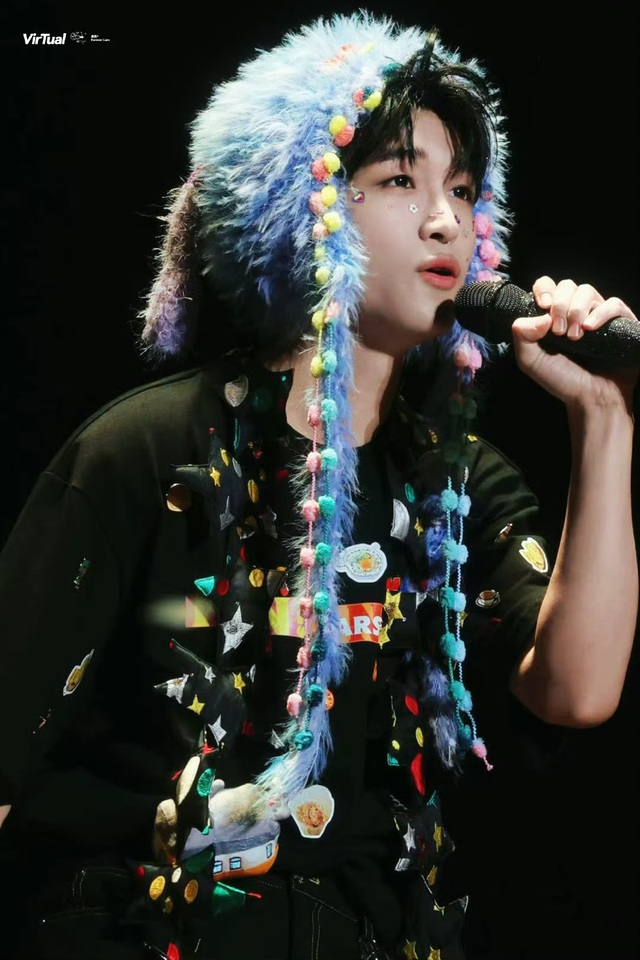 飘彩带的环节,黄晃晃伸手抓住了一些彩带,她透过彩带见到了在舞台上闪闪发光的黄子弘凡,黄子弘凡则是通过彩带与她对视。