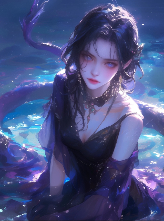 外貌:白肤墨发,紫瞳,一双桃花眼下有颗泪痣。