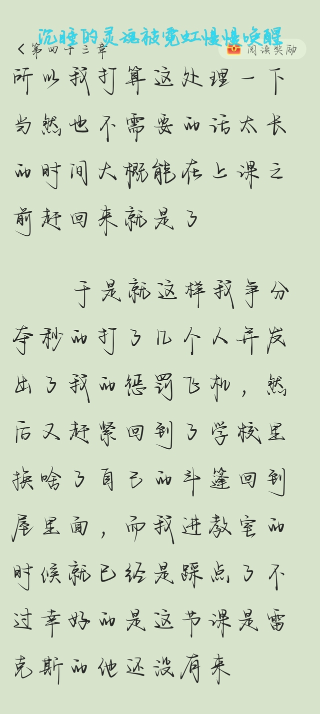 就这样我被迫听了一个课间汪大东和雷克斯的感情史,给我听的直犯困最后在数学老师的课堂上我明目张胆的睡着了,数学老师碍于我的成绩不好管我而且他也看到了后面的king和花灵龙他们两个都在对他用眼色示意他讲的声音小一点多写少说话,于是就这样我在课堂上睡了一个安稳的觉直到放学