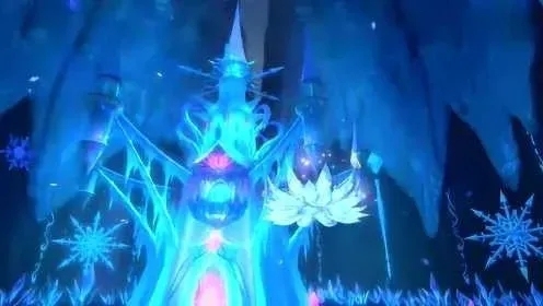 看着眼前这一座充满奇幻色彩的宫殿:整体被幽蓝的光芒笼罩,营造出神秘清冷的氛围。宫殿造型独特,顶部尖耸,如利剑直插着整个空间。周围悬浮着硕大的白色莲花和闪烁的星芒状物体,增添了空灵之感。冰棱般的结构从各处垂下,仿佛将宫殿置于冰雪世界,神秘又迷人。