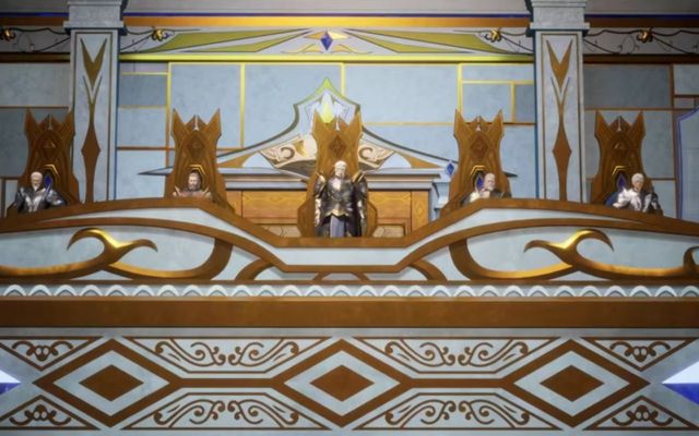 大厅中央的射灯亮起,照向看台上的五位老者,随后众席上的骑士们纷纷站起。