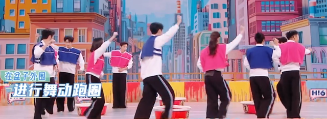 吴泽林接下来我们的两队成员需要按照给出的舞蹈动作,在盆子的外围舞动跑圈