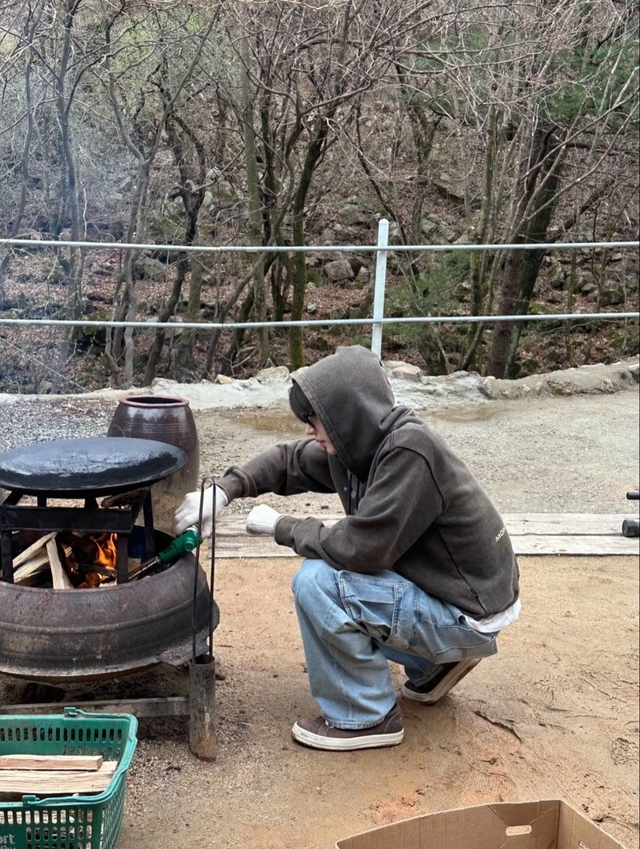 苏云艺洗了手看见朴成训还在这边蹲着,“朴成训,火烧着了吗?要开始烤串了。”