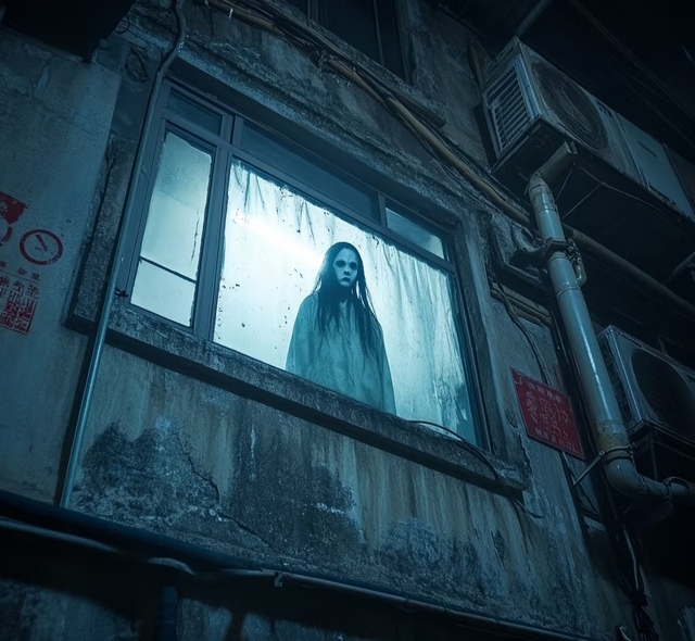 你上前看猫眼,结果看到了一具无头身体,你一惊,抬头一看,见宿舍大门上的玻璃门框上有一个面如死灰的女人的头颅,正翻着白眼死死盯着门里的你们,见你看到了她,她便裂开大嘴,露出尖利的牙齿,微笑。