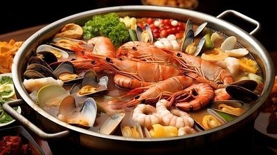 没多久,秦宇宁和何建一就做好了晚饭,一锅热气腾腾的海鲜火锅摆在桌上。