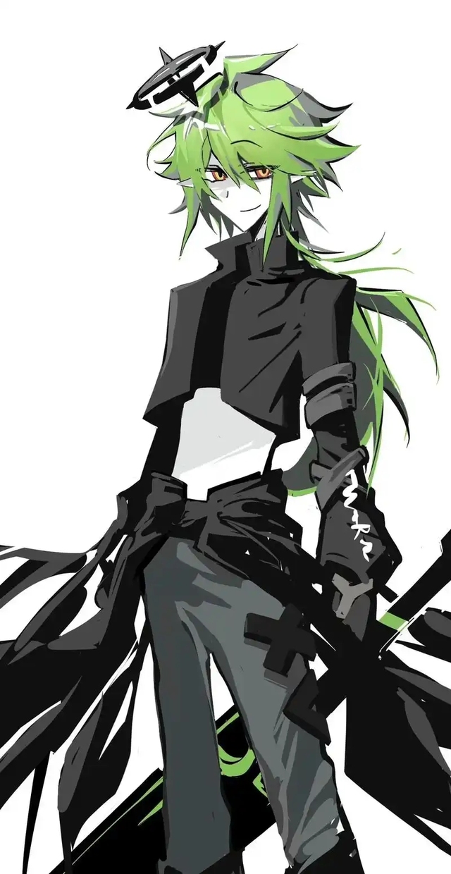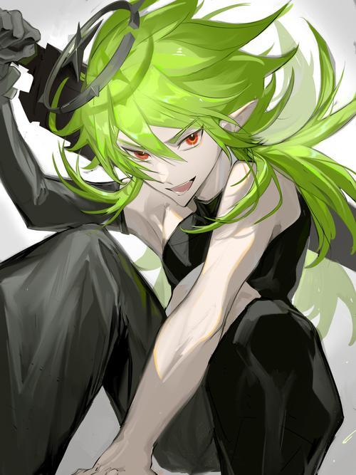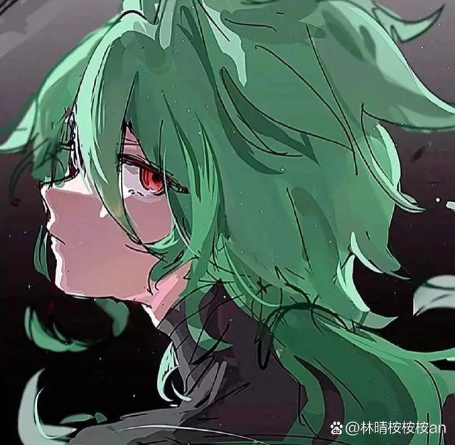 赤瞳孔碧绿发,一袭黑衣一柄碧刀,孤独的背影。