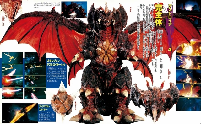 黑红色光团退出露出他的外形,是一头面目凶恶,猩红的甲壳,蝙蝠翅膀样的角,脸颊两侧三对獠牙,后背生长着一对可以遮天的双翼的怪兽他就是完全进化生命体:戴斯特洛伊亚