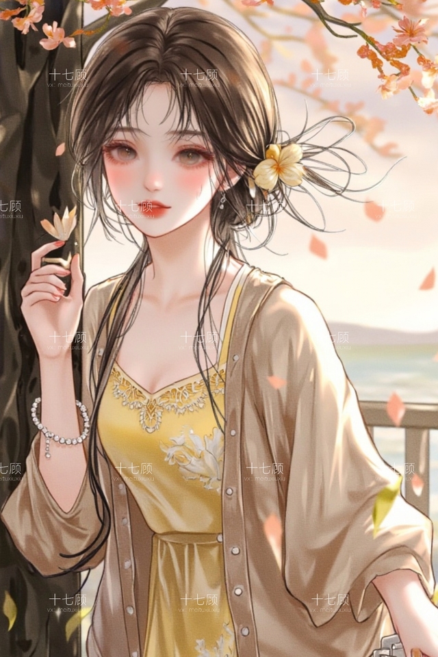 看他衬衫领口沾着樱花碎瓣