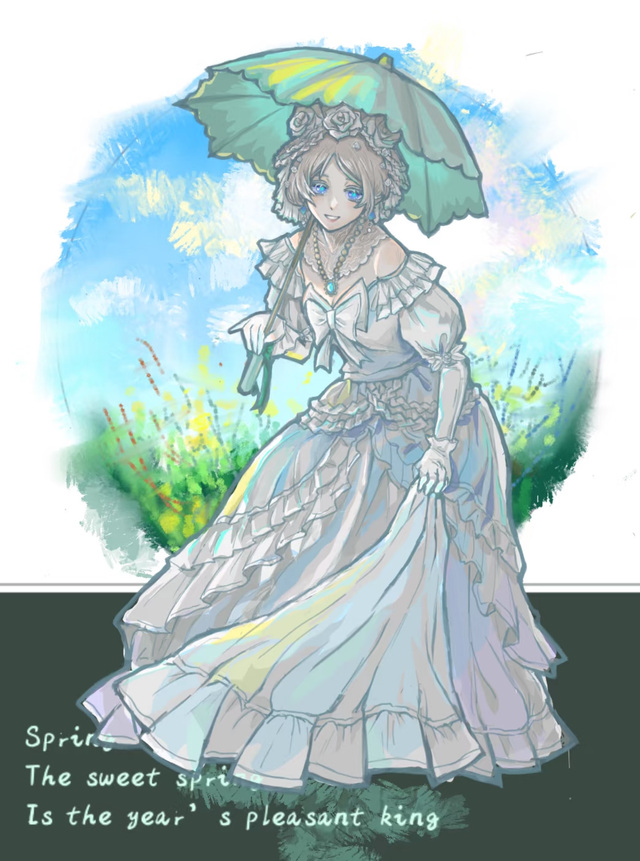 洁白的婚纱与偏灰的发色代替了她原本的模样,温和与冷厉并存的气质与脸上那副邪邪的表情相衬,透出一种违和的感觉。