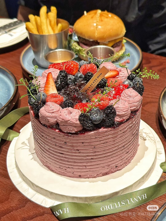 张真源买的是个蓝莓水果小蛋糕,酱多水果多,奶油少。