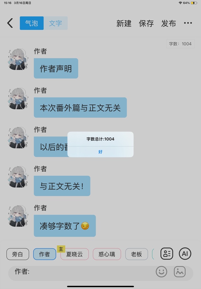 作者1004字至上