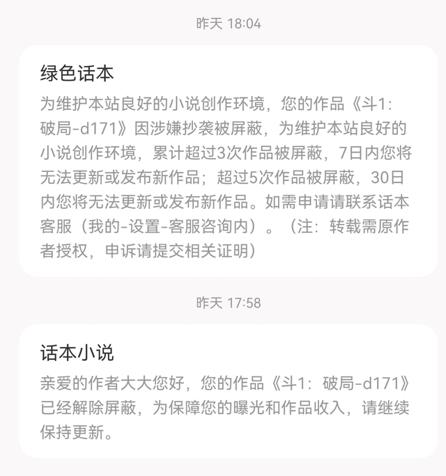 作者没有占章节字数,😢真的要无语了,以前我注销的作者账号上有本没签约的书是专门写斗一各个人物合集的只写了3000字,打算写完,重新在这个新号发布了后平台判刷书,好不容易找客服把书拉出来了,之后没有一小时审核又给判抄袭😢说发我自己的书要找自己要版权😃真是给我整不会了,这几天可能都会在处理这个事情,这几天欠的几章处理完事情后会补回来的。