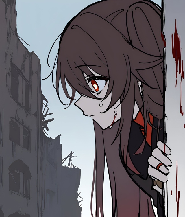 你其实不知道为什么,但你还是闭上嘴,跟她一起躲在废墟后面,她似乎有点紧张的朝着那边看去