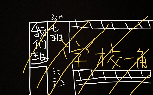 她在走廊的窗户上拿了自己的雨伞,我们的教室是在:
